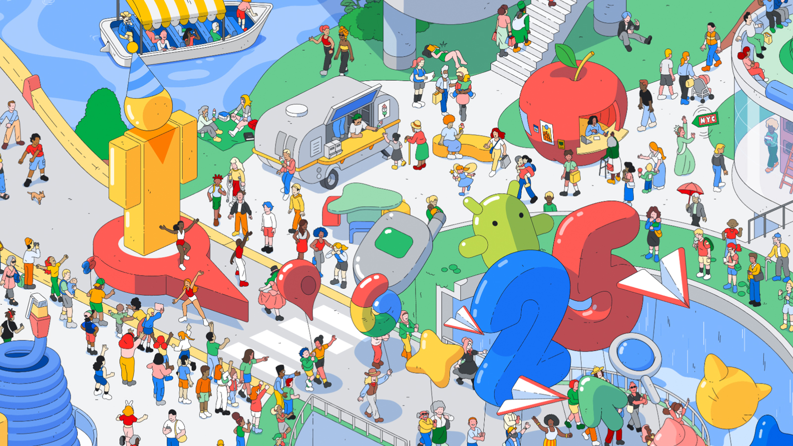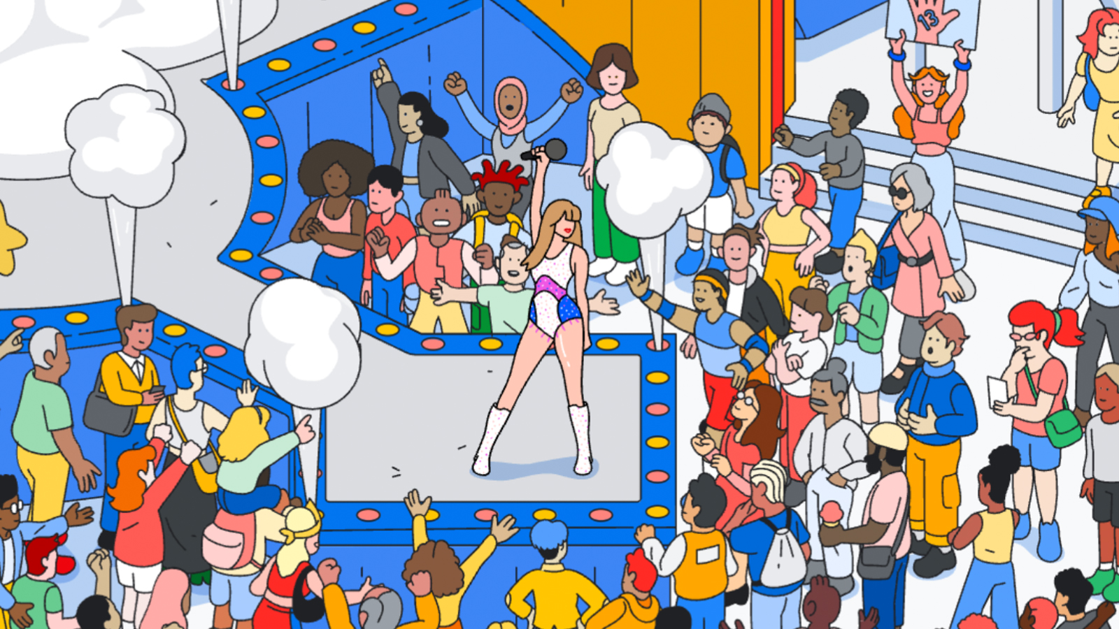 Our concept was to build an interactive world where people could come to find dozens of hidden most searched things from Taylor Swift to Pikachu to Leonardo DaVinci. We called it The Most Searched Playground, and we wanted to make sure everyone in the world would be able to visit, and find something they loved.