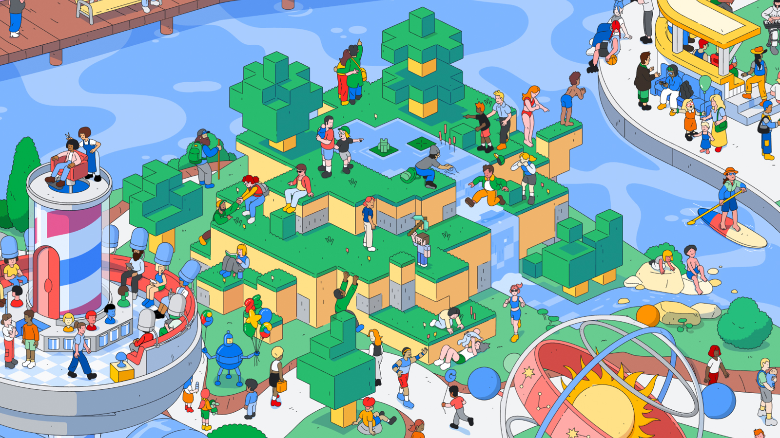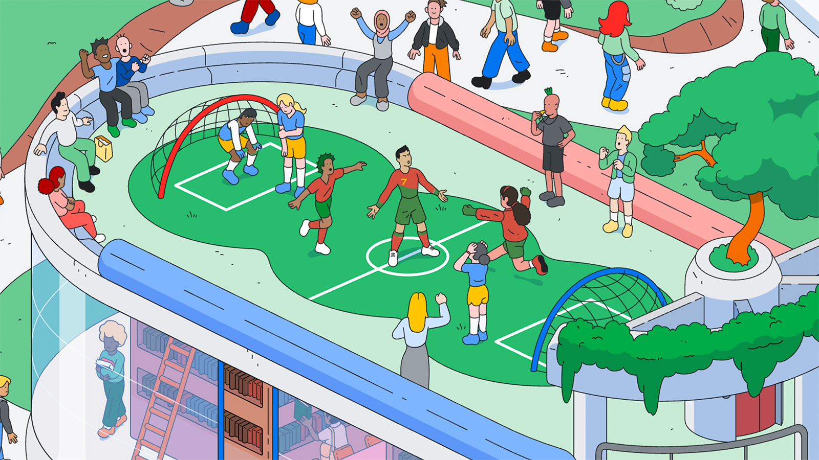 To pull this ambitious work off, our team worked closely with an illustration partner to create 2000+ unique individual characters and moments. It was important that the world feel rich and diverse, so that everyone could see themselves reflected in the world we were building.