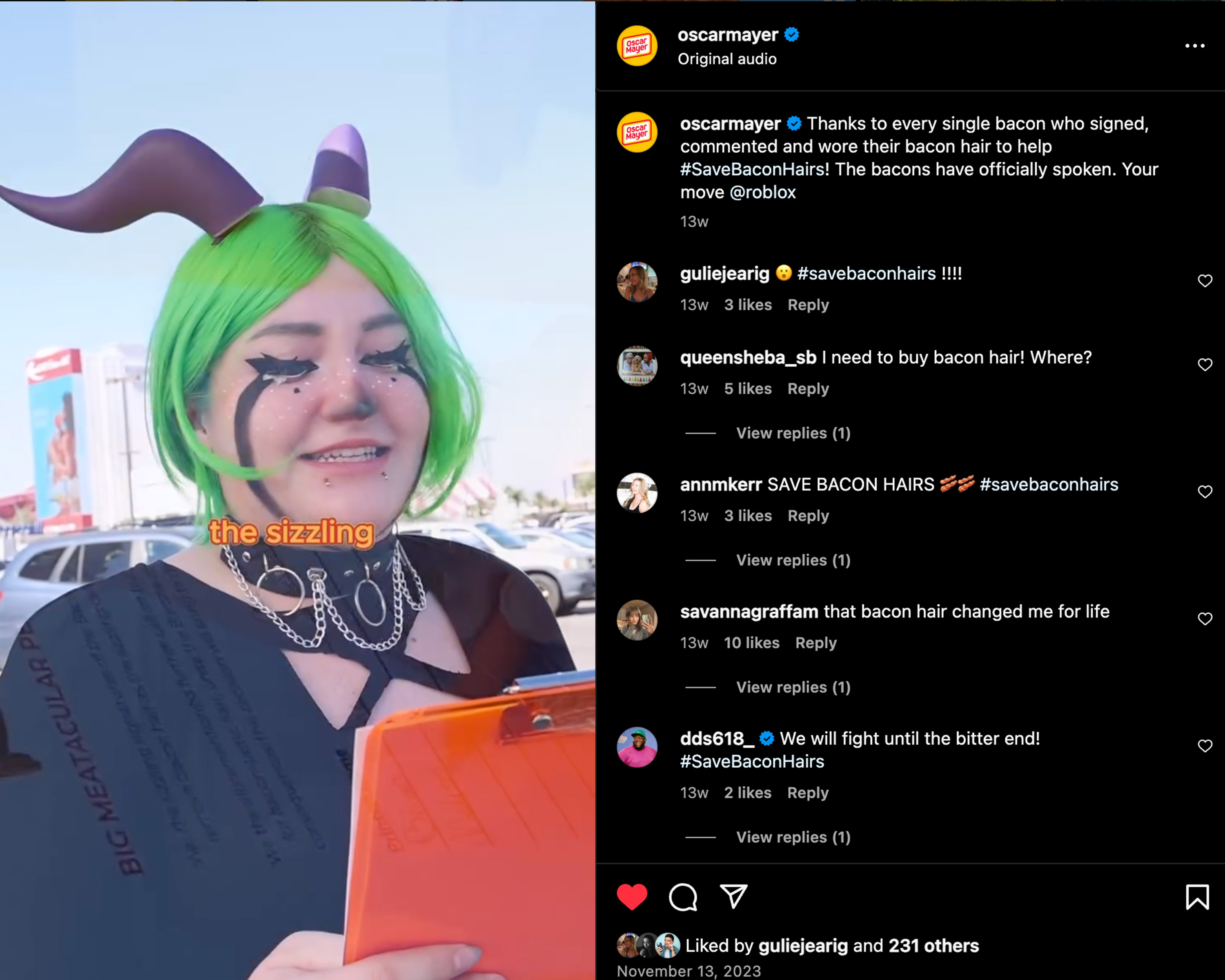 However, for America’s favorite bacon, Oscar Mayer, Roblox’s attack on bacon served as an opportunity to drive the conversation, and action, while delivering on the brand purpose to spark smiles with a new generation by disrupting the everyday with a simply joyful escape.